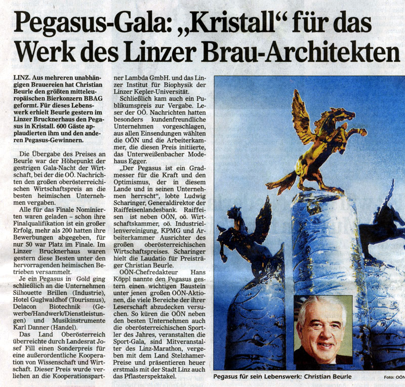 Wirtschaft am 06.06.2002 wurde zum 9. Mal der "Pegasus 2002" 02.04.2002 14.03.2002
