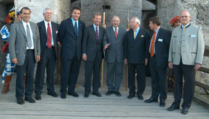 ![]() v. l. n. r.: Bgm Hans Steindl, Dr. Willi Kleine, Dr. Gerhard Roiss, Dr. Wilfried Haslauer, Dr. Günther Beckstein, Andreas Müll-Armack, Rudolf Fellner, Dr. Michael Elsen |